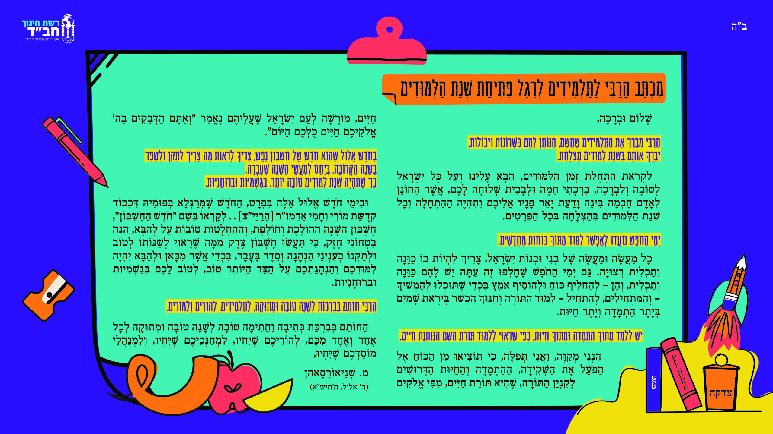 חומרים לפתיחת שנה - מגיעים מודפסים