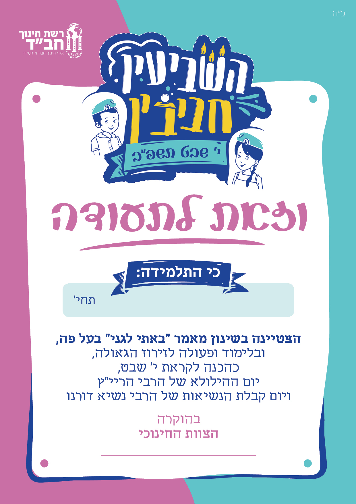 שבוע נרות להאיר כהכנה ליום הקדוש י' שבט תשפ"ב