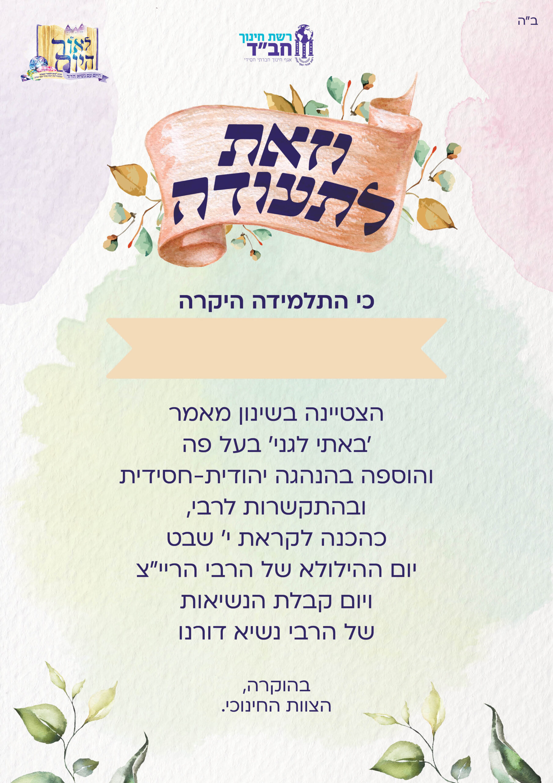 שבוע "נרות להאיר" בנושא 'היום יום'
